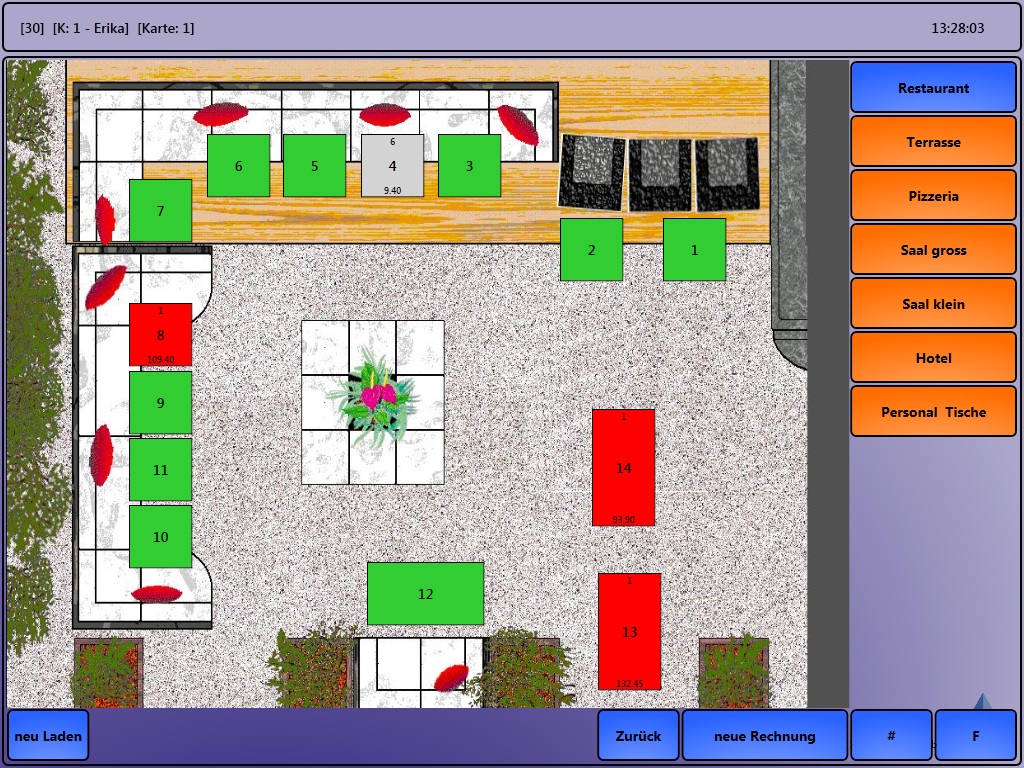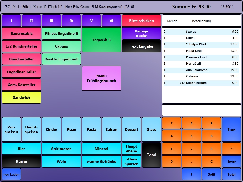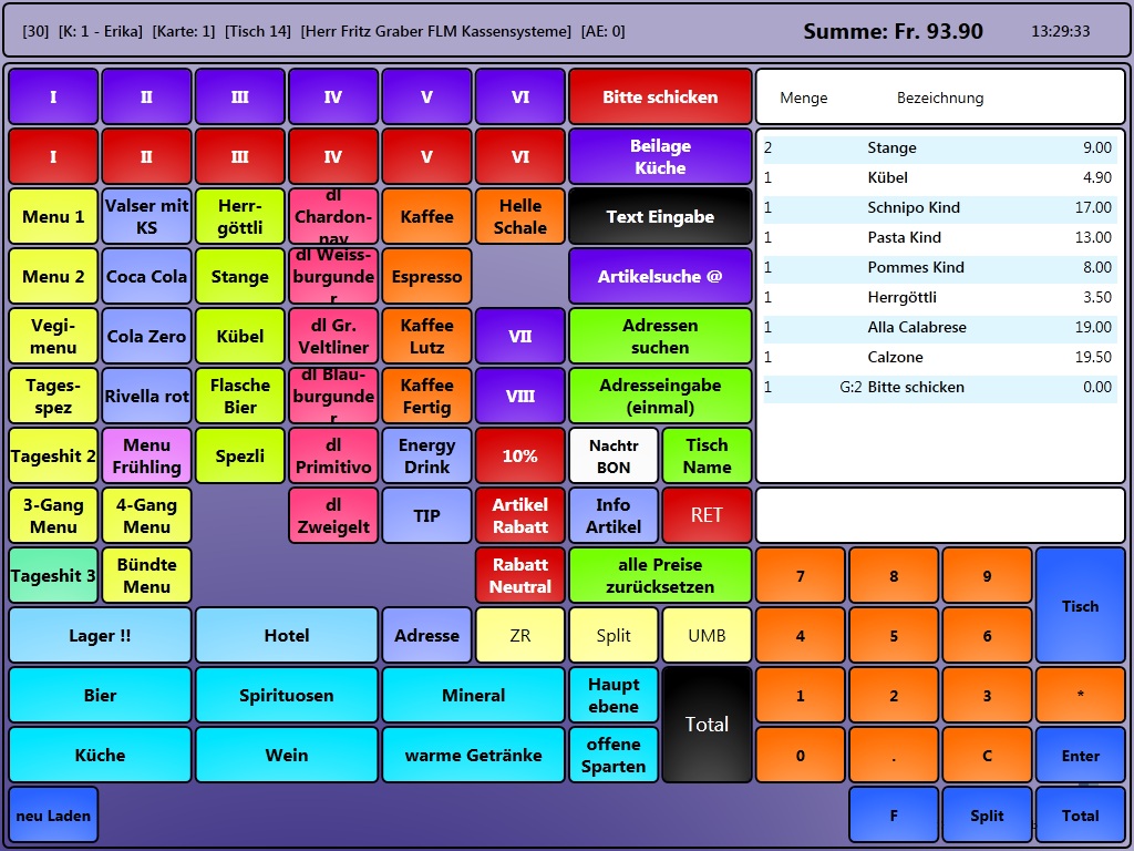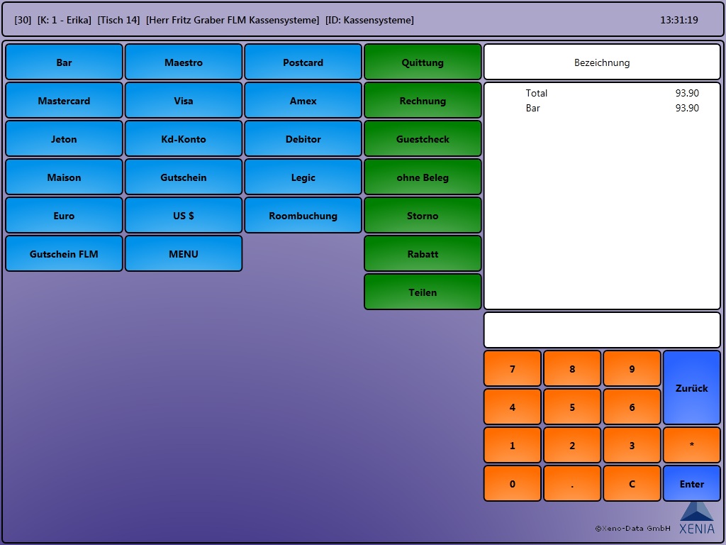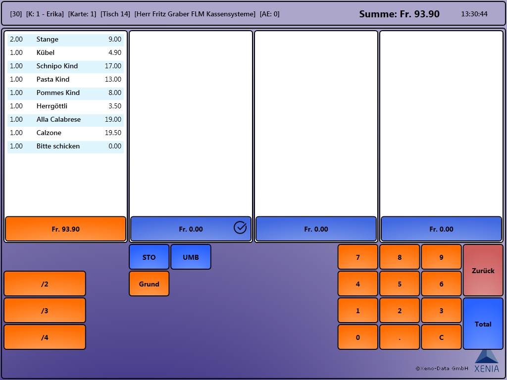 Das Design der Touchoberfläche, resp. Buchungsmaske von XENIA kann frei nach Ihren Wünschen und Erfahrungen gestaltet werden, so dass es für jeden möglich ist, die Kasse einfach und speditiv Kasse zu bedienen.