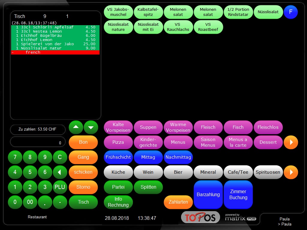 selbstverständlich – ist für uns, dass ein Kassensystem eine sehr breite Palette von Funktionen beherrscht. Das Besondere an der Matrix POS ist, dass sie auf Anhieb so leicht zu bedienen ist. Sie ist praktisch „selbstverständlich“. An der Entwicklung der Matrix POS waren neben Entwicklern mit über zehn Jahren Programmiererfahrung, Ergonomie- und Kommunikationsdesignern ebenso Gastronomen und Servicekräfte beteiligt. Die Zusammensetzung dieses Teams war entscheidend dafür, dass die Matrix POS alle Bedürfnisse und „Kniffe” Ihrer Branche beherrscht und sich gleichzeitig so perfekt an die Arbeitsabläufe anpasst.